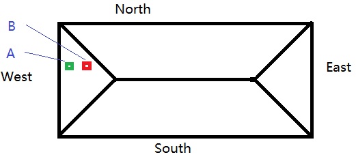 如下图,由相交路线只取最短可知:当西块的某格A出现,与其同一Y坐标,正东方向的西块格子B必须从西块消失,因为A的存在,B格无法从西线进入。可以在西块把待占格子按Y坐标排序,Y坐标相等的只取X坐标最小的,其余全都去掉。