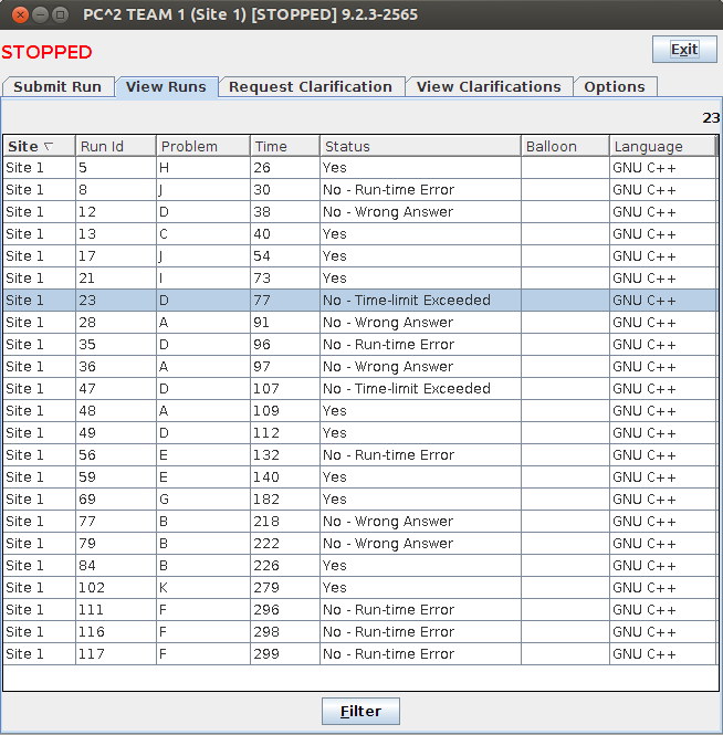这场我们队做得比较顺。整体来说发挥得不错,开题顺序什么的基本也没问题。唯一一点有问题的就是K题,这题mm一和我说完,我们讨论了不到5分钟就想出了靠谱的做法,而且做法写起来也不难。我觉得如果我们在比较早交流题意的话,应该可以更早的过掉K题。B题我们是找规律过的,不过这里我不反对反而赞同找规律的思路,因为这个问题规模很大,很难模拟,而且问题本身非常优美,很有可能有规律。找规律的时候我们也合理利用机子,mm找规律的实力很强,思路也很广。我觉得遇到类似的题目,如果没有其他题可写的话,用机子找规律还是很靠谱的。唯一没有AC的题是F题,这题的问题是mm没有给我们讲题目背景,而是直接告诉我们数学模型,在这个模型的基础上,我们讨论如何解题。赛后看了题解,发现mm的模型是有问题的。所以以后应该注意一下,有空闲的人可以再去确认一遍题意。另外F题的官方解法也是非常有借鉴意义的。