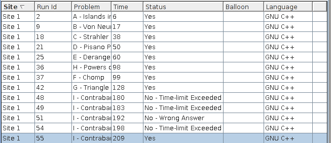 luyi看了darksun跳过的C题,然后随便搞了一下就过了。这时候我上去敲D,敲完就过了。