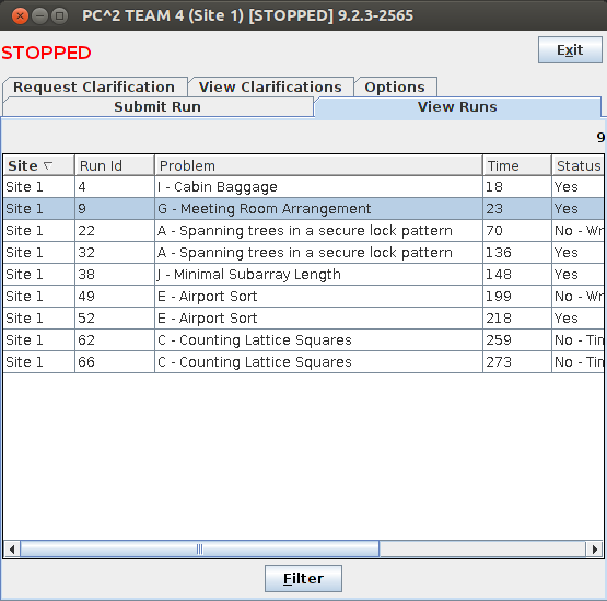 智商爆炸的一天...开场读完J感觉可以写,跟kotomi学长讨论了一会就开始写,写完发现算法有误,无法通过构造的特定数据,卡在此处。此时发现A题有人过,三人决定开A,敲完模板后发现最大数据爆精度,使用long double返回WA,讨论了几分钟后决定改写Java。kotomi写Java时gantians学长想出了J题的做法,在过了A之后便上去写。C题没有想出靠谱的规律(赛后与朱稼乐学长交流,发现就差一点,在数侧的三角形时候我数重复了,果然智商下线),决定打表找规律。gantians学长写完E后返回WA,debug了一会修改通过。最后一小时三人在攻C,gantians学长找出O(n)的公式,返回TLE后决定一起优化常数,可惜始终未能将时间降到6s以内。