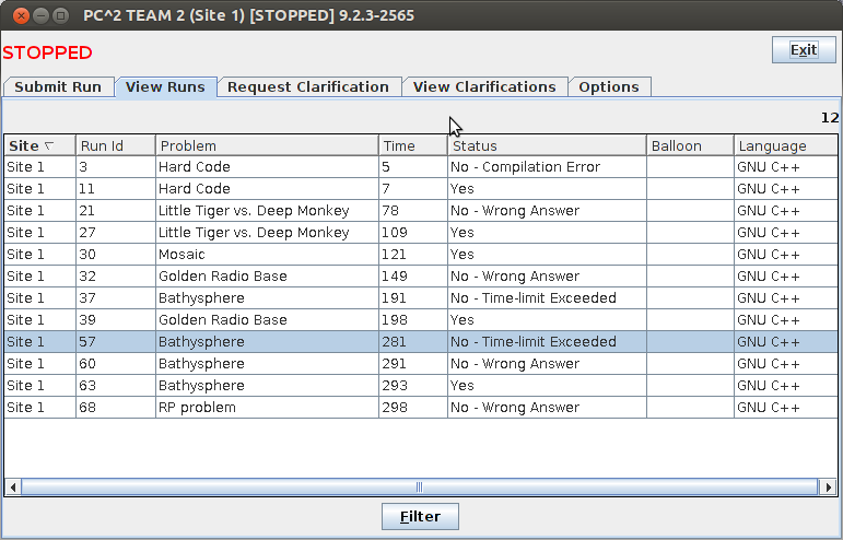 今天的出题数基本表现出了我们队的正常水平,罚时数稍微高了一些. 对比现场赛的排名来看, 我们队目前的实力应该是属于银牌区的中游. 保银牌应该是我们的区域赛现实目标.