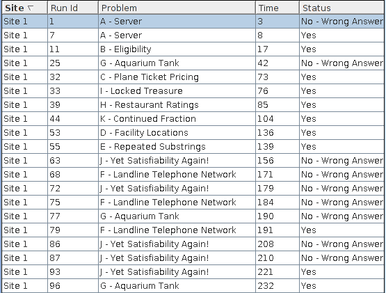 E通过之后我上机写J,由于没有考虑某项重复出现的情况WA了,改了之后又出现了其他错误,最后重写了读入部分还是WA,wxj学长找出一个错并提醒我检查优先级,我才发现重写后的读入有一处优先级错误。改完之后终于过了。'''J5y221'''。期间FGJ三题并行调试,在wxj学长率先修正F题之后终于出现了转机,三题相继通过。[[BR]]
