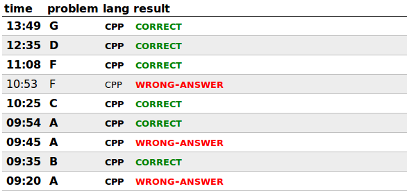 今天主要是中间卡题导致E没时间写完,其中E想题的时候没注意数据范围其实是比较小的,可以花式暴力搞,这个要注意一下以后讲题要把数据范围的特点也说清楚一下