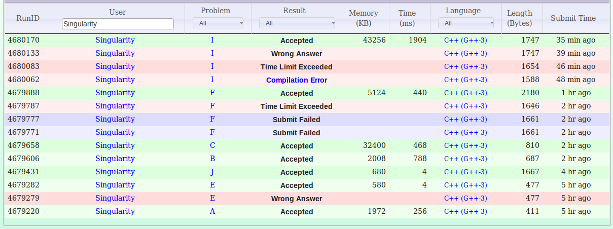 今天写了E,脑残wa了一次不应该。然后想了I,T了。然后优化,xian学长用set搞了一发,卡了过去。