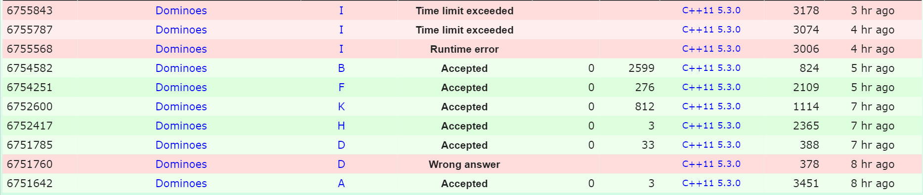后来想I,算法是对的,但常数写大了,tle。优化不动了。感觉F卡了很久,一直在推前半部分,赛后看了下tutrial发现了科学的推F的办法。