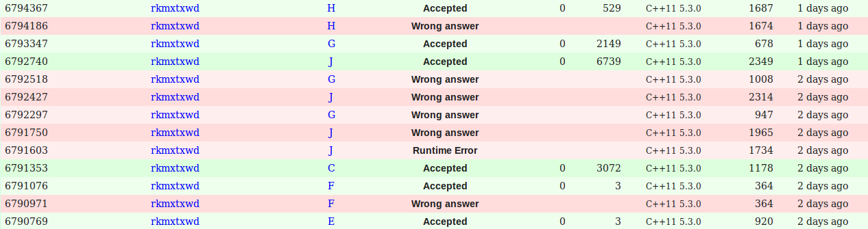 开场看了A、B、C、D,感觉C是个蘑菇题,很能做的样子,不过先分了F的锅,贪快果断记错了经典贪心的排序,WA1。