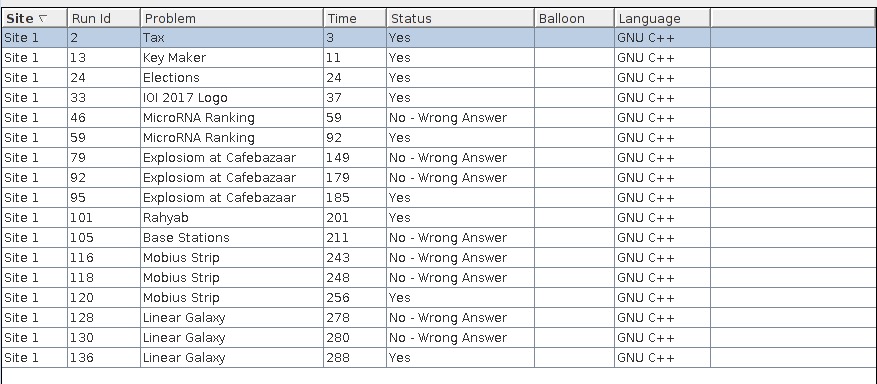 开场sub学长果然没有到,yzc表示A很短,可以看懂,然后发现自己没有看懂,cjb发现之后开始朗读题意,yzc开始进行翻译工作,A1y3. 此时有两队过B,cjb迅速看懂题意之后让yzc继续翻译,此时sub学长终于赶到,全队精神振奋,B1y11。此时chicken队过了G,于是让sub学长去看yzc没怎么看懂的G,而后在sub学长的帮助下过了样例,G1y24. 在G的调试中,cjb数次换过手来打C,最后C1y37. 随后陷入短暂的三人想题时间,期间讨论了D和L,为了保险起见,cjb去打了tarjan的板子以备做L. sub学长和yzc学长讨论了很久后上手打D,wa了一发之后调整了方法,D2y92. 此时全队进入萎靡状态,发现大家纷纷过了J,心情复杂,但是H又很有思路,于是打算先攻H,cjb把H板子打完之后又准备了J的板子,然后想J. 经过了艰苦卓绝的调试,sub学长先写完大体,wa了两发后yzc学长接手,终于H3y185. 在yzc打H的时候,sub学长一语惊醒cjb, H过后又J1y201,连过两题重回第二. 此时大家开始考虑aftermath队过的两道E和I,表示很绝望,cjb决定去写个迷之算法搞一队高速通过的K,wa,遂放弃. 发现大家纷纷过E,但我们连样例都没有通过,最后决定完全乱猜,最后迷之判定,E3y256,cjb此时提出了二分答案之后贪心I,最后yzc和sub完善了思路,二分答案之后花式judge获得2发wa,sub学长猛然提出根本不用二分答案,直接两边取点贪心,改了之后I3y288. 遗憾的是因为彪爷carry,kdTree艹过了K,所以最后一队10题rk1,我们9题rk2,别的队最多只有7题,hznu的chicken队已经两次rk3,我们浙大还要继续努力啊。