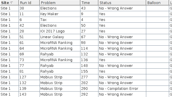 流水账:早上起来头晕晕的,已经预见到了比赛划水的情景。果然,接到题目从后往前看,纷纷不可做的观感。缓慢看题的过程中队友们疯狂A题,手速极快地过掉了几个签到题('''A1y4''')('''B1y9''')('''C1y27''')。而我则还在揣摩L的题意,以及觉得K是个看起来很直观的几何题,好像是求求凸包就能做的,然而现场学计算几何,想到的算法也没有正确性可言,所以也没有开题。跟着看了一下榜,发现已经有人WA了I题,觉得或许是个可做题,但是在蹩脚的题意理解下,跟wyz说了一个错误的二分做法,wyz和chy交错地调代码,在G题WA了一发之后过了('''G2y50''')。随后交了I,自信地WA了,发现几乎所有提交了I的都在WA,仔细一看,觉得题意理解错误,遂放弃去找别的题。此时两位队友发现D题果然也可做,遂开始敲D,此时我和wyz讲了L和K的可能的做法,觉得几何题大家原来没做过,而且正确性没保障,放弃掉,L题找互质长度环的做法也很难说,因为题意也觉得不太清楚,于是也没做。随后发现有人过了J题,遂和wyz将眼光锁定在了J题上,在听了wyz清楚明白的讲题之后,觉得或许求个最小割就行了,但是网络流的代码太长,如果做法错误太伤,于是简单地证明了一下正确性,恰逢chy连WA两发D题,wyz就快速接手,开始敲最小割的板子,我主要负责在旁边看看有没有手抖。在wyz强大的手速之下,板子很快就敲好了,快速debug过了样例之后果断交了一发,WA了,此时我们决定让chy继续调他的D题,在发现了No solution的'n'没大写之后,chy果断提交,稳稳地A了('''D3y136''')。此时我发现wyz的路径条数没加权,提醒了一下,于是改了两行代码,并且提醒了要注意爆int的问题,之后wyz似乎忘记改int成long long,交了一发,WA了,大惑不解。好在随后在翻代码的时候马上注意到了这点,鞭策wyz改掉之后A掉了这题('''J3y155''')。开心地看了一下榜,排在第二位,神清气爽(仍然头晕),接着就开始缓慢地想其余的题目了,两位队友决定做F这道码农题,其后我则开始对其余题目东想想西想想,学学计算几何什么的。在很长一段时间过后,队友将F题提交了(后来听说因为知道是高精度了所以其实没有写完),果不其然地WA了。我作为队内唯一Python选手,不太适合做长代码的题目,于是F题不了了之,大家开始撕纸带,思考E题的思路,终于在后半场一道题都没有AC。
