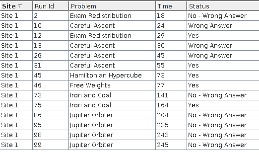 今日血崩.理应1A的两道的两道签到题贡献了近100罚时(或者这才是常态?),中期由于跟榜落后加大罚时压力,在中等题算法上也没有大的突破.最严重的是AJ两题双开后接连WA,不断换人,进入焦躁状态,最终两题都没有调出来(其实网络流应该可以调出来?).这次比赛暴露了个人实力不足和代码能力不足的问题,在分配交流上也日益乏力.