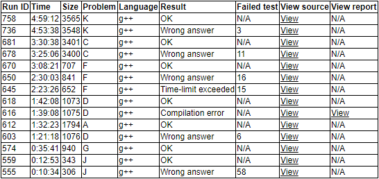 总结:今天最重大的失误是我先写了K然后我还放弃了自己的版本(一口大锅),以及F晚交了半小时的罚时可以省掉原来,下次这样的简单修改应该尽早改掉,中间的时间无疑是浪费掉了的。其余的原本E题可能可以过,但是时间匀不出来(感觉就是我占了位子写K的缘故),本嘴巴选手还是要提升一下自己的代码能力啊,其余的,大约还是尽到了自己的本分,大约都及时给出了正确做法,K题最后过了wyz立大功。另外一点是,有板子的题尽量别手打,最后作为一个不敲代码的计算几何选手大约真的应该好好刷刷几何题,锻炼一下自己的代码能力了,很失职很失职。