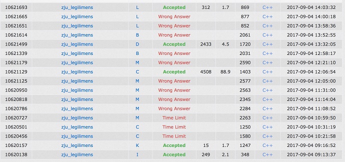 以后不要乱开题。。。那些没人过或者很少人过的题真的要写也想清楚再写,不要盲目自大。。。还有应该提高读题姿势,不确定的题意先划出来,讨论一波先。一个人上机的时候两个人讨论要更有方向性。