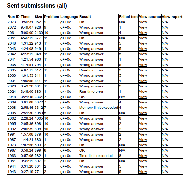 - T11 彭自涵WA了很多发,隔壁team 4也WA了很多发,其实我觉得是被虐多了,习惯性认为自己垫底垫成习惯了,于是开始潜意识性怠惰不想做题。觉得剩下的题一定是自己做不动的,就各种矫情。其实题目根本就是水题,稍微花点时间思考一下,认真写写就能过的东西我们就一遍写好吧。(一开始似乎是因为没开long double精度挂了?)
