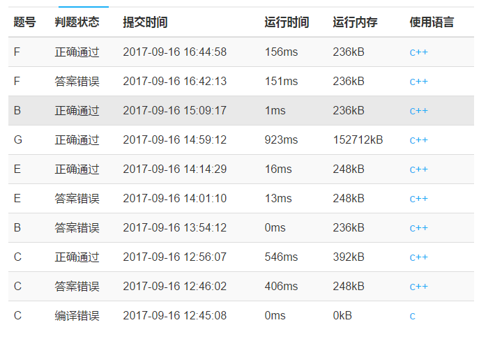 今天发挥一般,C题B题E题F题都浪费了挺多的时间。感觉AI两题也不是很难吧(因为I题hash能卡过去,我也是只会hash选手。。)。A题我想的时候没有发现是%2意义下的。。。