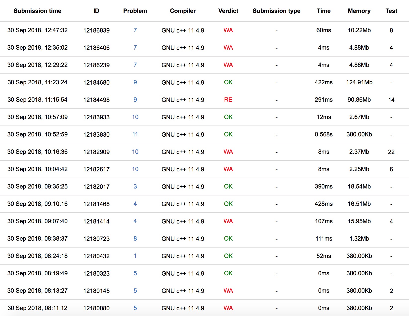 出门cjb题意没读好,E连wa2发,E3y19,yzc继续写模拟,A1y24,sub上机写H,H1y38,cjb和yzc讨论D,cjb先抄了个LCT,然后发现做法有问题,之后讨论了下启发式合并,D2y70,cjb和sub讨论了下C,cjb上C,C1y103,之后yzc上机写J,wa了两发,sub上机写K,K1y172,之后J3y177,cjb上机写I,将信将疑下RE了,之后改大数组I2y203,之后开出了F和G,双开都wa了,F有个数据一直过不去,G wa了3发,最后rk25,感觉状态不太好,还是应该要做10个题才行。