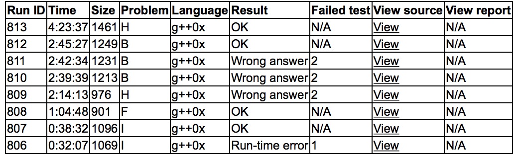 出门cjb感觉I是sb题,写了一会儿'''I2y38'''。之后sub上机写F,'''F1y64'''。三人讨论B,得到了做法,sub表示H更好搞,上机写H,然后wa了开始疯狂调精度,之后不太行了就改写B,'''B3y165'''。之后sub继续疯狂调H精度,'''H1y263'''。cjb和yzc把所有能读的都读了&开了,十分自闭,感觉智商压制。最后感觉J的复杂度不科学,但是大家好像都是这么写的?