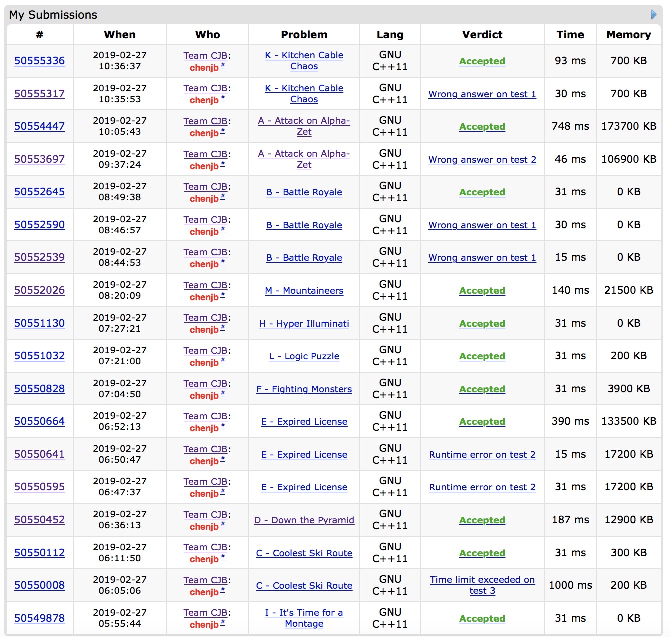 cjb单挑第一周的集训队作业题,做了10个,剩余一个没有spj是假题,另一个sub凌晨写了个广搜过了。