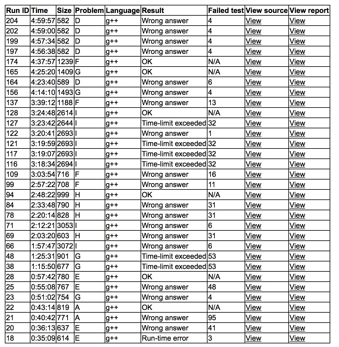 ,又wa了。卡了很久,什么题都过不去。终于cjb和yzc搞出了H,H4y168。sub给了个F的做法,yzc上机wa了,cjb换了个板子,结果tle了。终于发现不用sort,I8y205。F fix了之后还是wa,只好先让sub上去写G,G也wa了。cjb上了个猜想,D也wa了。封榜后,sub fix了G,G2y265。努力搞F,终于过了,F4y278。最后三人一起艹D,一直都wa,构造不够给力。