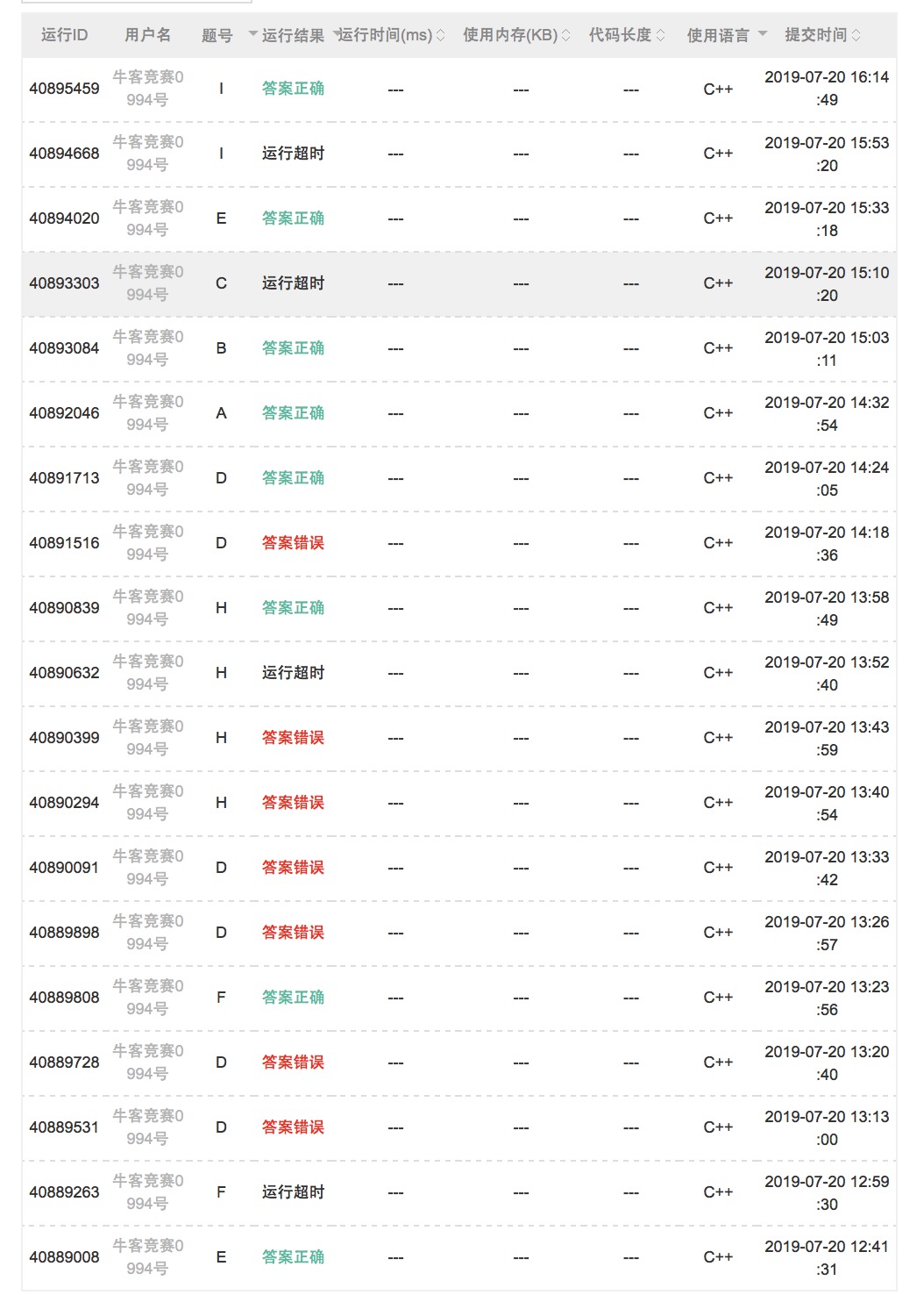 上午出门半小时cjb单打,然后yzc加入,到中午12点过9题跑路,后shb过了A保住第一。多校开始后,先看题,yzc读了E感觉很傻,上机E1y41,然后cjb上机写D,换yzc写F超时,之后cjb D wa了,yzc上机写F,F2y83。cjb继续猛wa D题,感觉是个智障。yzc上机写悬线法也wa了,双重签到失败。之后yzc找到了bug,变成tle后去掉了sort,H4y118。继续艹D,发现做法的本质错误,之后终于D6y144。sub上机A1y152,B1y183,yzc上机试了发C发现不仅tle了,甚至题意也是错的。之后sub写I,tle后展开优化常数I2y254,和咖啡鸡题数相同,输了罚时rk2。