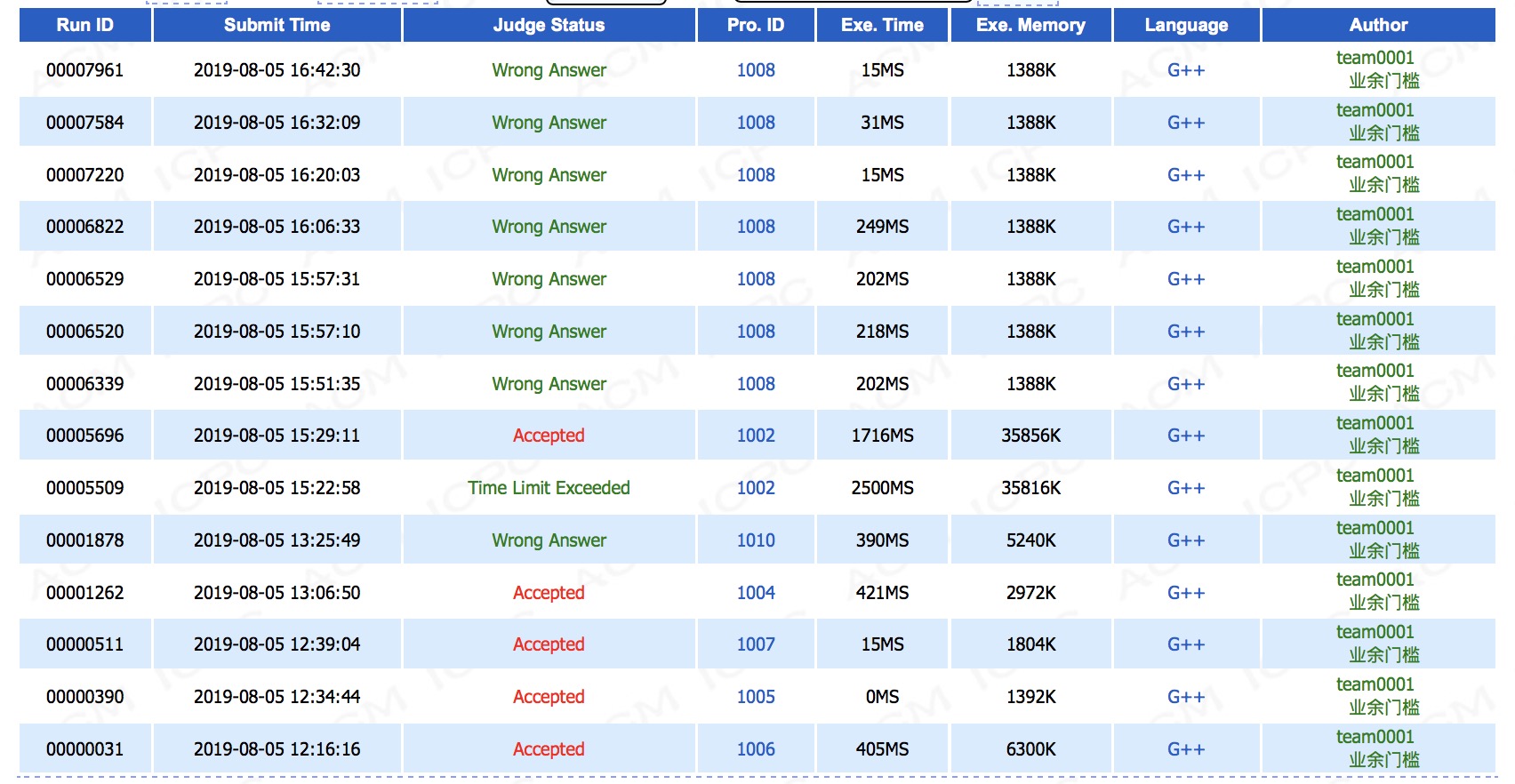 出门签到'''F1y16''','''E1y34''','''G1y39''','''D1y66'''。之后就陷入了卡题,大家纷纷过B,然后剩下5个数学和几何,cjb和yzc糊了好几个假做法,最后按着sub说的乱搞了个B,'''B2y209'''。最后sub丢了H给yzc去写,自己去搞数学,wa了之后帮忙fix,头很大,最后发现这代码不足够,打出GG。