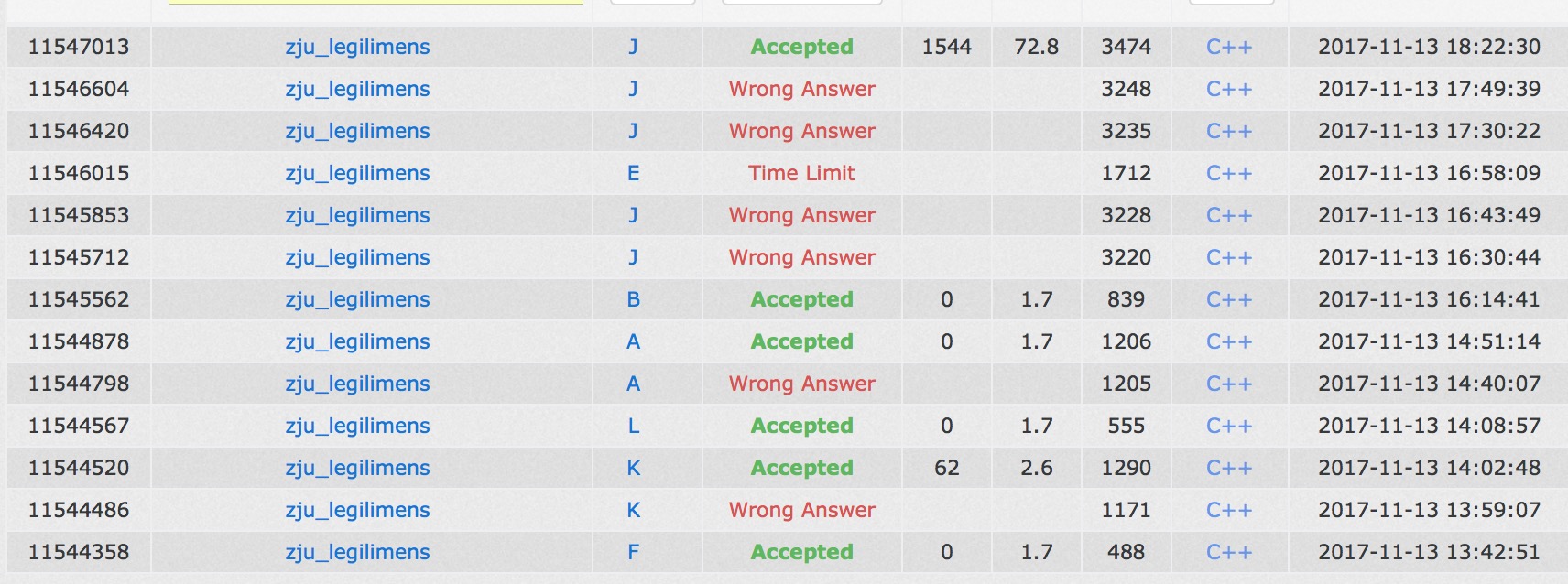 - 2.不要低估题目的大小,像今天的L我就是做出了错误的估计,除了被题面坑,也还是浪费了不少时间,如果不做这个J,D和E开出来时间上应该都是够的,而实际上我们C的做法也是基本正确的,还好没有掉进更大的坑。