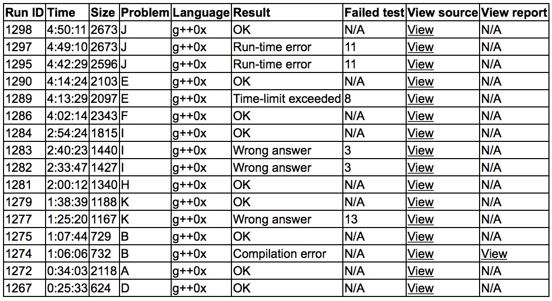今天总体打得还行,但是中间F和E做得有点慢,sub犯了点小错误增加了几发罚时,不过封榜后过了3个题,最后rush出了一个题还是挺不错的,要保持。