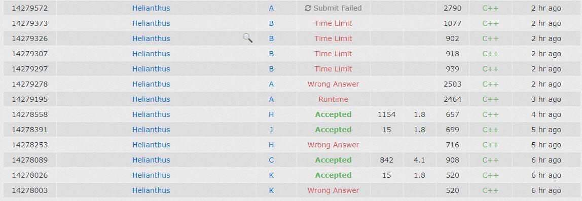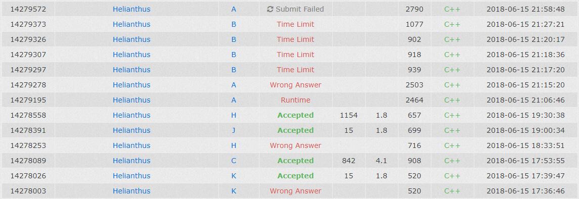 策略上最关键的参考因素是时间,我们队对时间的概念太模糊了,基本没有对时间有过规划。前期因为不用规划时间,签到或者中等题想到做法就写了,造成了我们前期还算可以的现象。中后期萎靡一是因为实力不够,二是因为策略。实力就不说了,自己努力提高。策略的话,还是有很大的提升空间的。比如上机前问问队友大概需要多久;队友上机萎了的时候帮队友看看,或者把队友赶下来想好再写;中期时过的人不算特别少的题都看看题意;后期减少开题数,集中精力搞其中一到二题。这次lgl写的A我和heltion啥都不知道,A挂了两次我们还是啥也不知道在推B,heltion的H写了比较久没过,我应该早点换上去的。