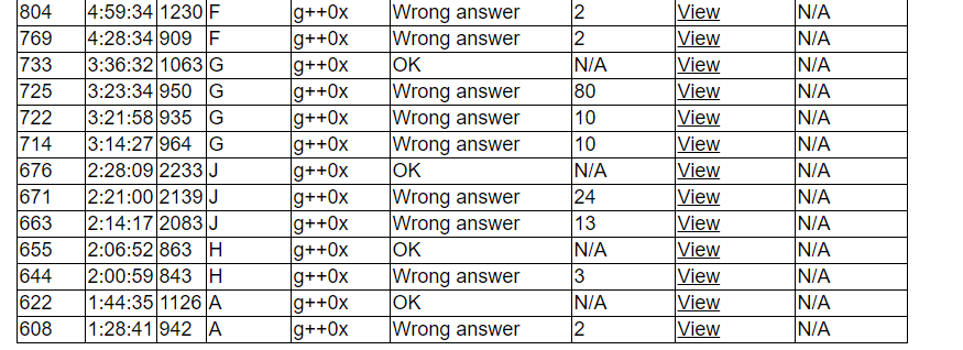 开场过了两个签到题后过了A,约翰写J,剩下两个人看题。结果H题并没有讨论出来[[br]]