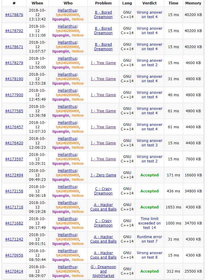 F题去年做过,没去开。B题差分约束,没有看出来,听到一队的讨论才发现。D题说明我们对点分治还不懂,算点贡献答案的话,进入第二层子树就算不了了,应该统计所有点对(即所有路径)。I题一直在想树DP,但是树DP要维护的东西太繁杂,最后也没写出来。