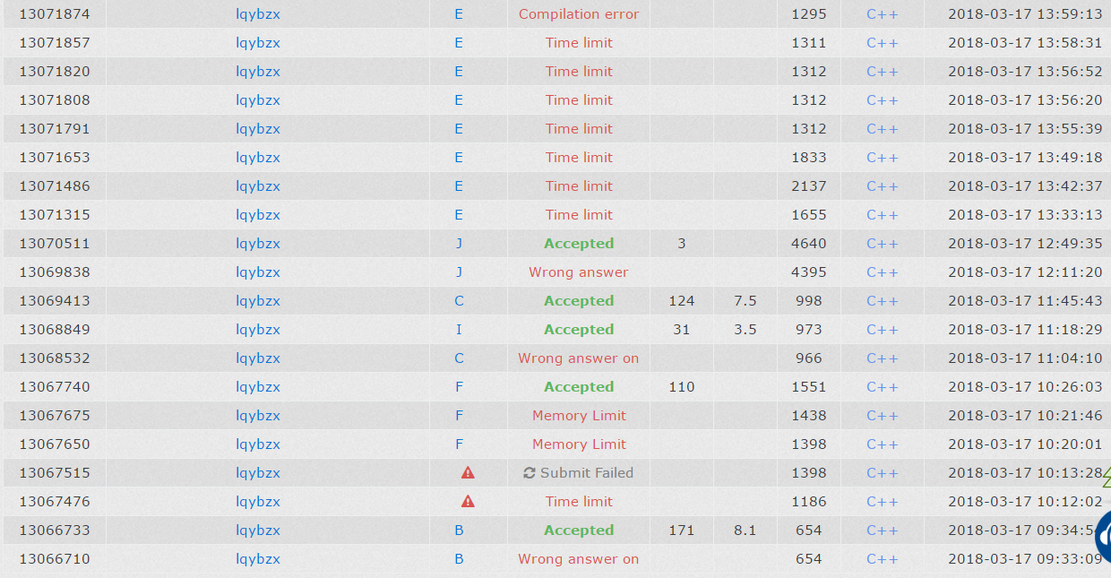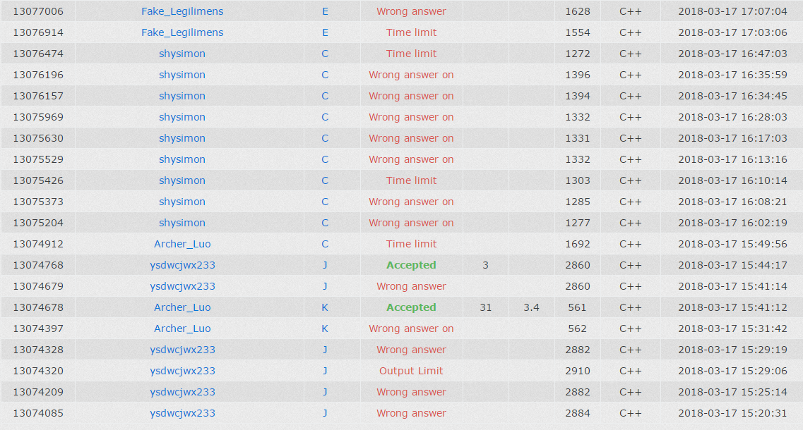 前期比较顺利,还拿了个一血。做大模拟的时候一开始一直没有把架构想好,多次调整后才得到一个比较科学的姿势,浪费了一点时间,WA了一发之后一度怀疑人生。。
