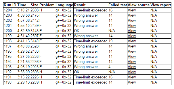 写完H后WA了一发T了一发,期间约翰和zx讨论了E题一个大概做法。下机和约翰一起看代码查错。zx上机写E[[br]]