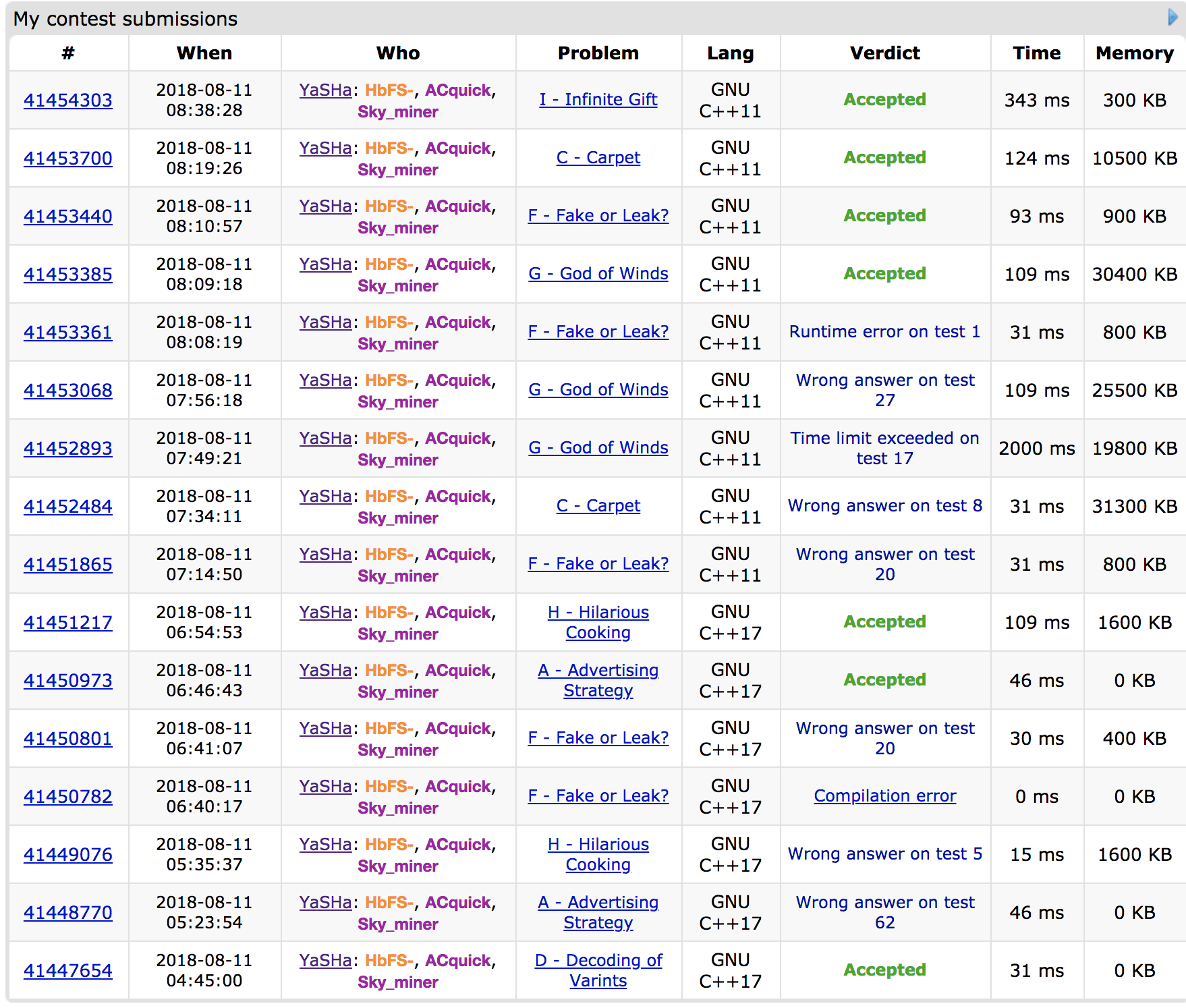 提交后'''A166(2)''',然后dhr上机调试H,lyc协助debug,hyy在debug F题的代码。