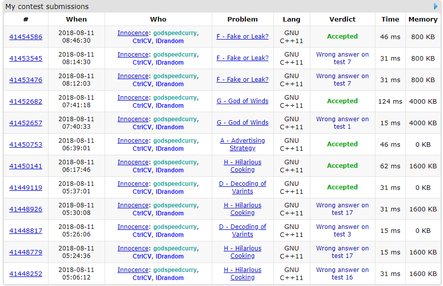 | 2017 - ICPC - Europe - NEERC - Moscow Subregional | O | - | Ø | O | - | O | O | O | - | - | X | X | X |