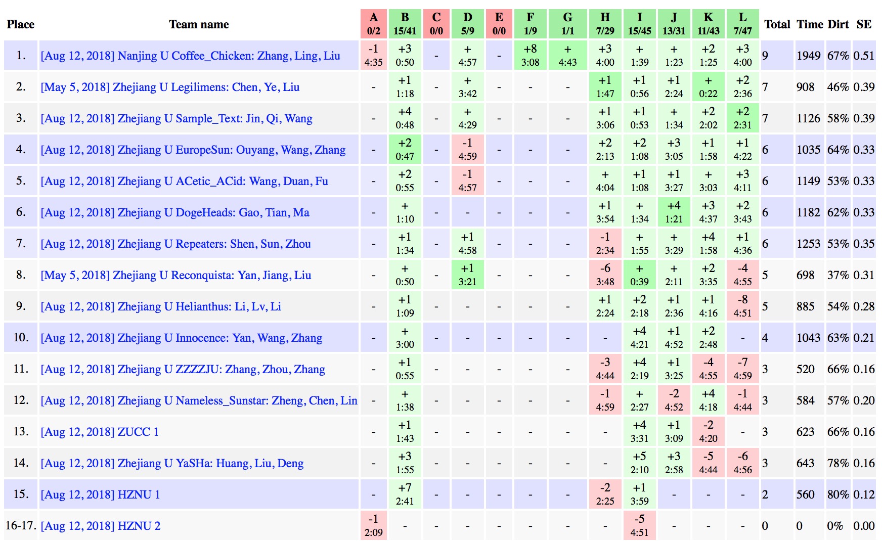 zzh:今天题目难度较大,所以只能通过多开题找合适的题下手,我的任务基本局限于读题后思考算法,然后告诉队友题意,他们主写代码,现在知识非常薄弱,有时候也会头铁去乱搞一发,WA是自然的,坚持训练下去,一定会有反弹的