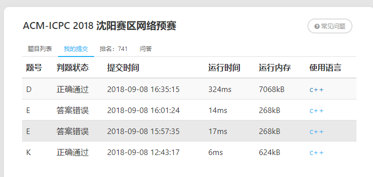 | 2018 - ICPC - Asia - Shenyang - Online | - | * | - | O | - | * | * | - | * | - | O | X | X |