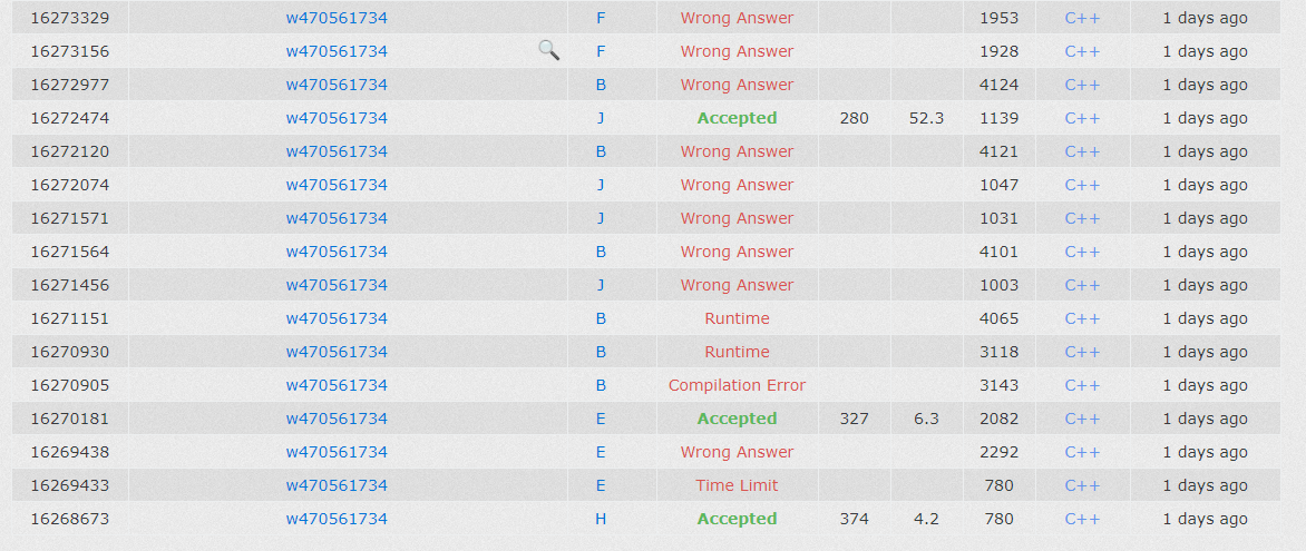 B wsh 觉得能做,就上了。J大家都不太明白正则,题意理解跑偏了很久,yrb想了dp方程,后面发现题意不对,改的时候没改全,挂了好几发。