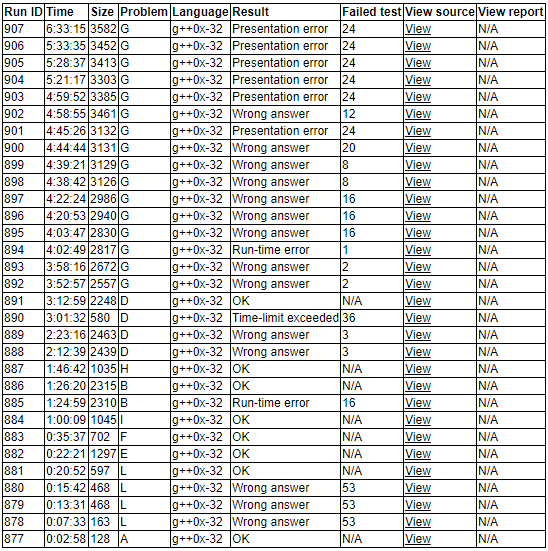 3. 心态有问题,最后写模拟题的时候应该开C题和K题,C题循环节大小都已经算出来了,怎么配MST都想好了,就是不把G题换成C题来写,集火K题没准也出来了。