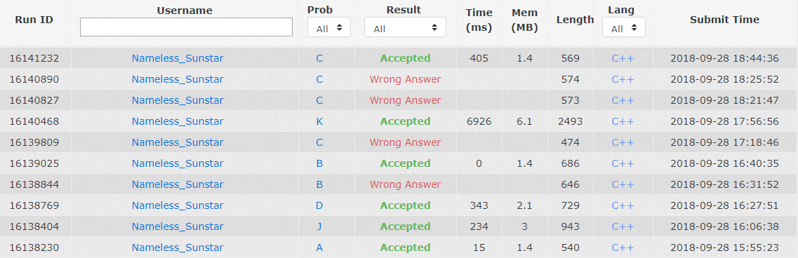 zhhhplus: 啥,我什么都不知道啊,我上来和C题杠上了(在这之前签了J题emmmmmmm)然后想偏了结果到后面才互相讨论出C题的做法啊,我什么都不知道啊,过了它之后就在卡E题和G题啊呜呜