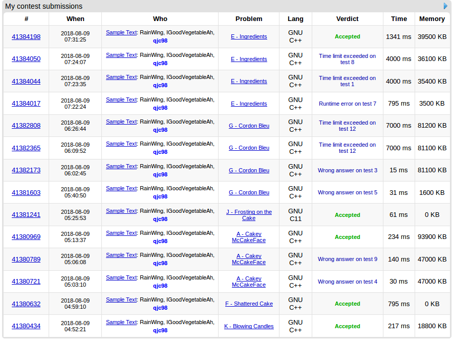 qjc & wcy 讨论E题解法, 因为错误理解题面延误了一点点时间, 因为高估map及评测机效率及wcy个人失误多了三发罚时, 通过
