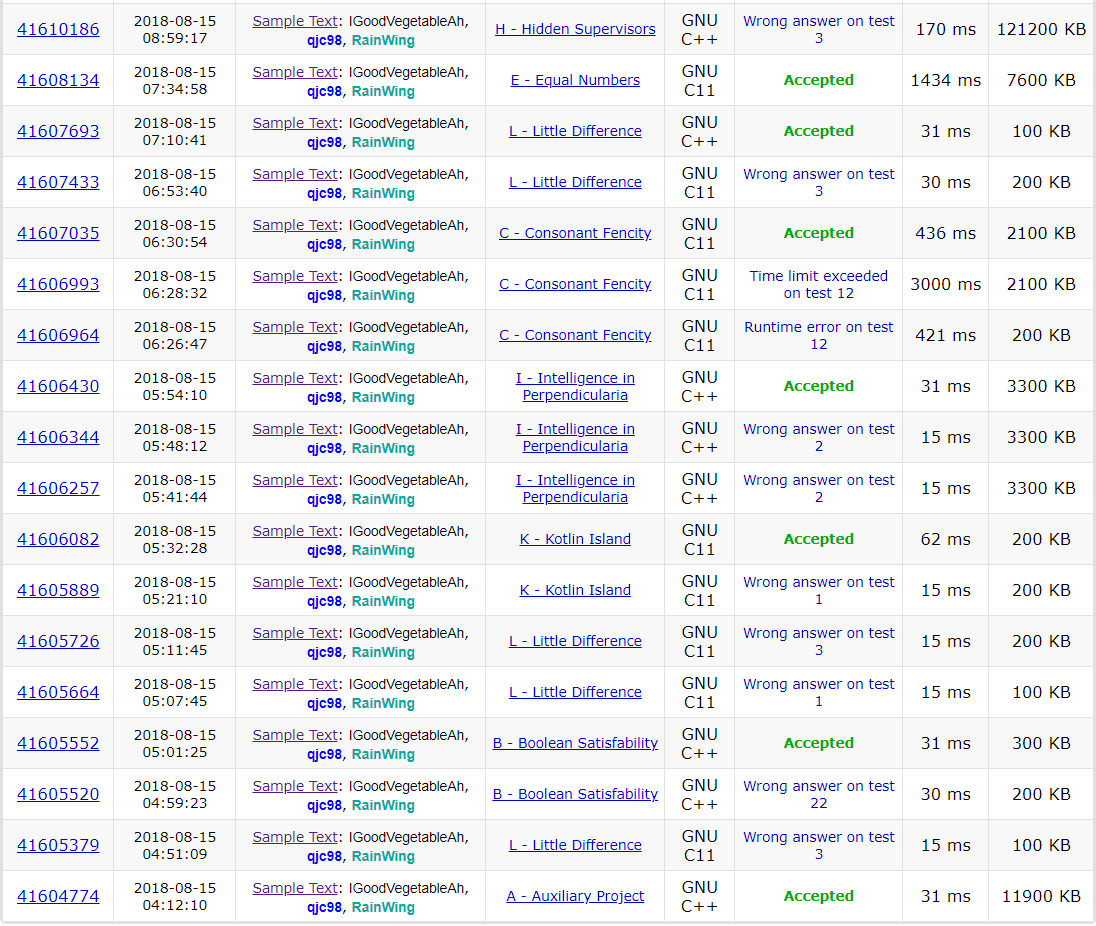 签到A还可以再快点的... 读K忘了最重要的细节坑了学长一发, B题又是1ll的问题, I题死板的做法又没注意数据范围= =