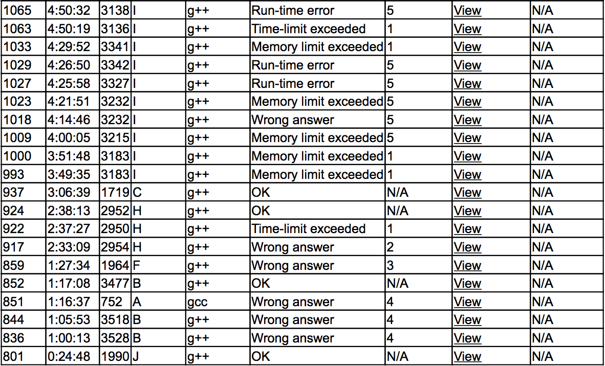 J和B是签到题。然后开了一个F题,交给wcy写了以后发现并没有过,然后没有认真检查细节开始怀疑算法的正确性,赛后发现思路是正确的,只是实现上爆了longlong。
