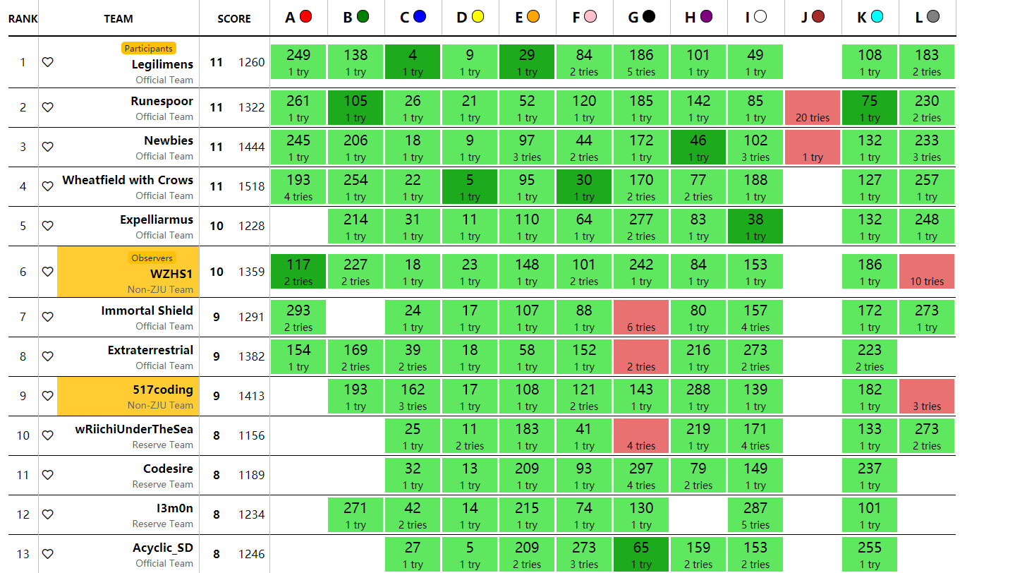 今天的题思维量都不大,基本上都是做法就摆脸上,就看写得快不快,准不准,像我们这种做题慢的队伍速度上就明显跟不上,不是不会做,就是写不完,调不对。今天的dirt率其实不是很高,但是像F题那种就稍微写的慢一点,考虑的不全面。而且很多时候都是坑在题意上,如果当时愿意去读L的话感觉还能挣扎一下,好好学英语√ 提高写代码的速度√