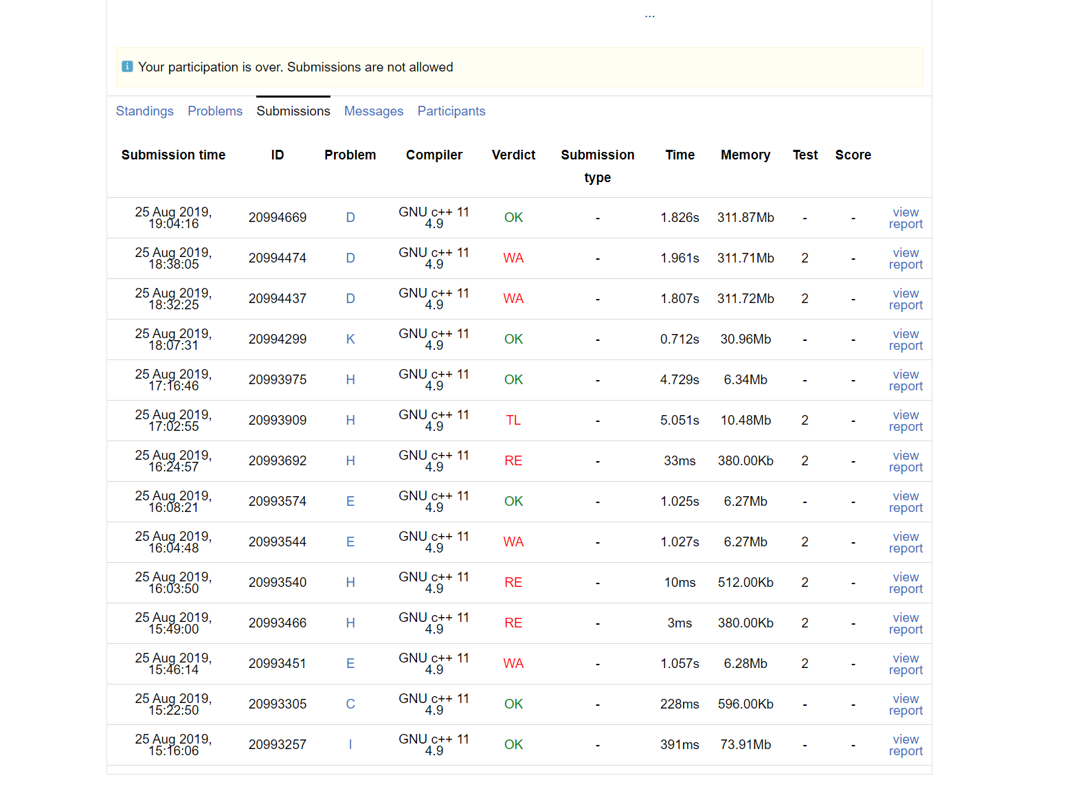 zqq: 前期我们很惨。H题开始我低估了它的难度,没有想清楚就上去写,发现漏了很多中情况。后来想清楚了重写了一发,然而还是漏了很多情况。显得非常不冷静。真的不应该慌!