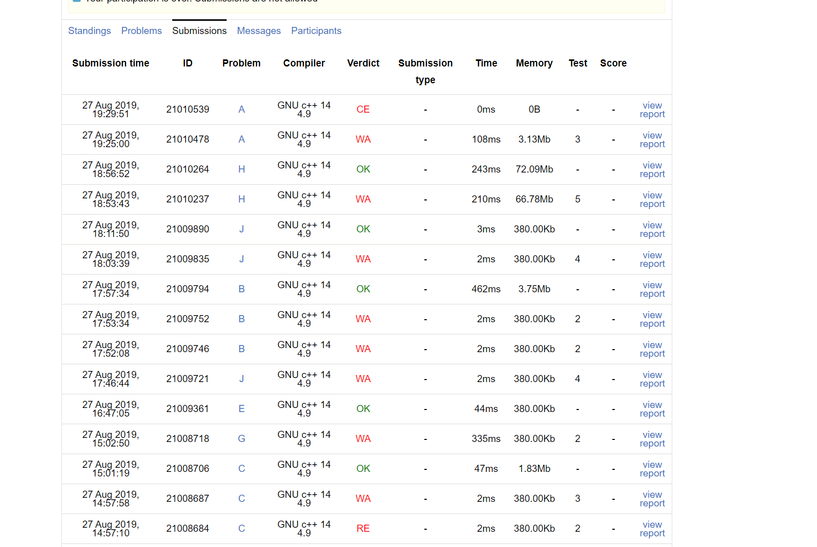 zqq: 前期我们很慢。主要是因为我的J题没有想清楚。感觉想得比较混乱。E题没有认真打表,没有思路。