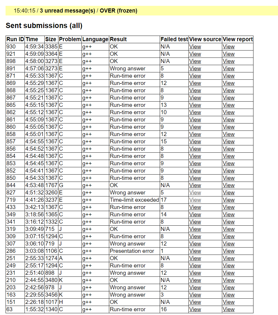 '''zqq: ''' 今天前期我们很惨。我的K题lct几乎忘了, 再加上模板是以前某道题上粘下来的,并不详尽、当时有很多奇怪的限制(可能)。调了很久。主要是lct写错了很难调,只能用手模拟所有操作