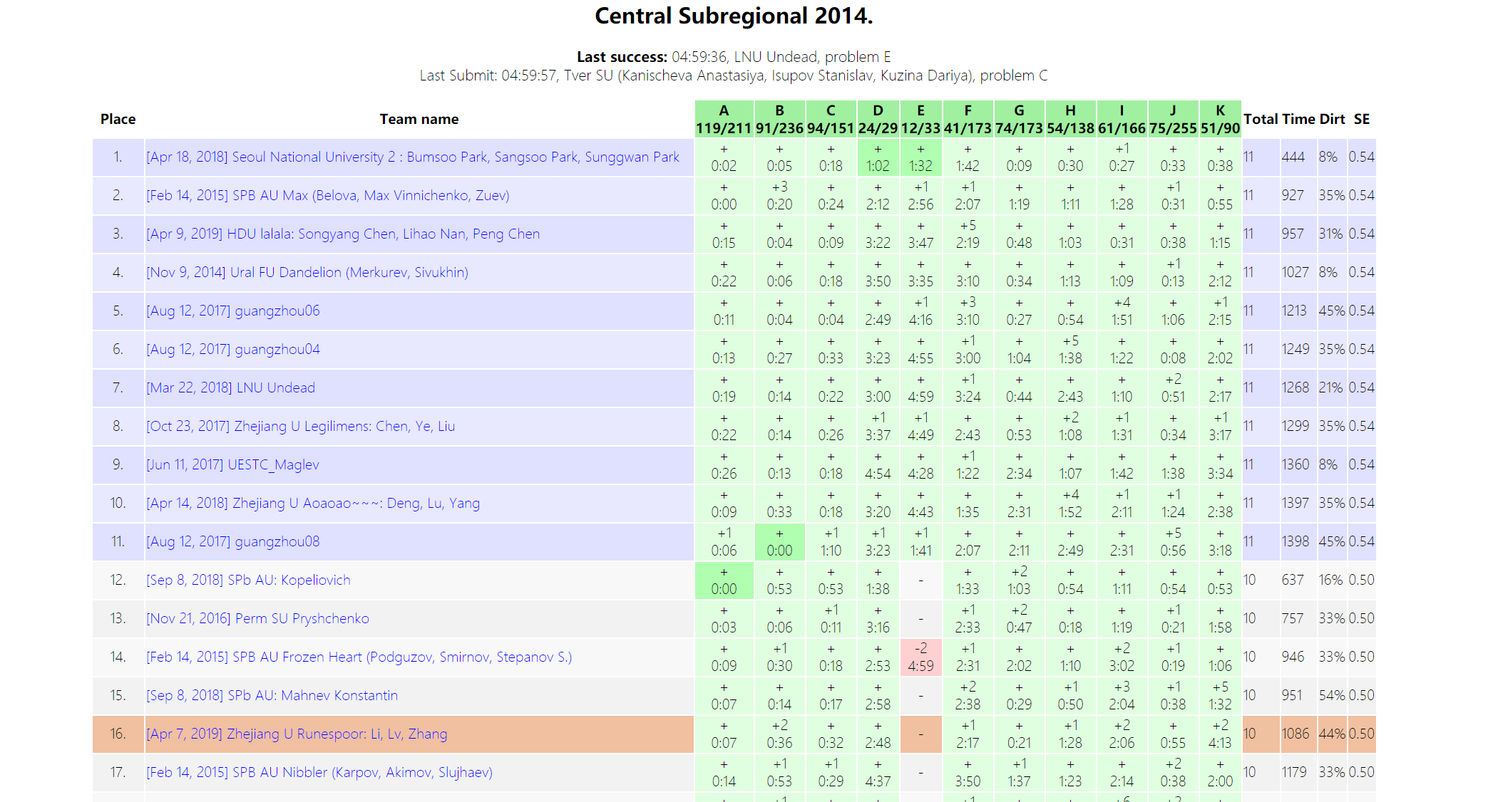zqq: 本应是AK场,然而我最后E 题对于乱搞的代码实现能力还是不强。没有想清楚细节。'''K题简单的递推。因为只有两行,不需要插头或者状压。但是我一直没有把转移系统的想清楚,导致调了一小时才过。非常不应该!'''