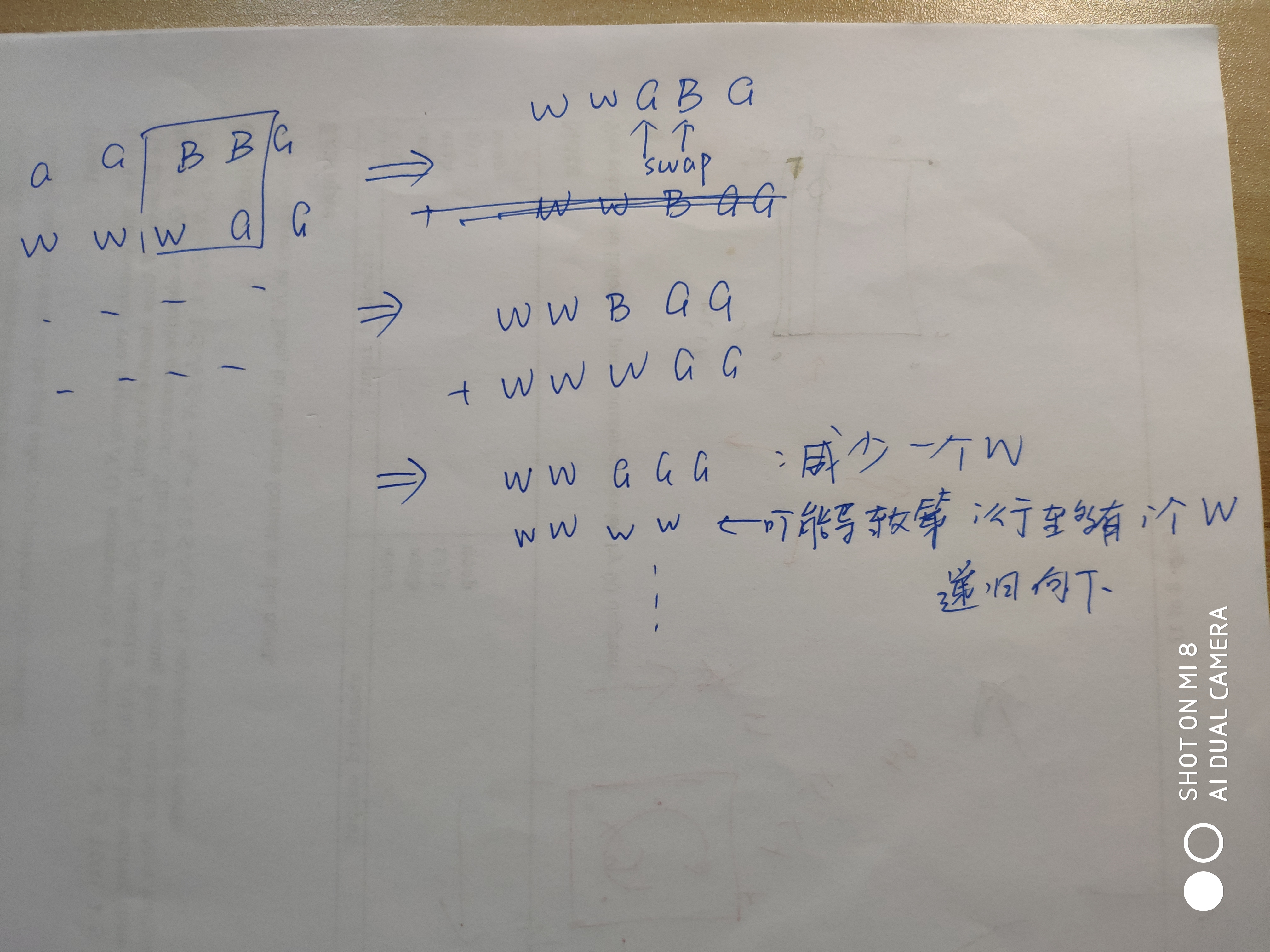 * I : 考虑一行有n个W,怎么通过才做把它变成n - 1个。然后递归的做下去。