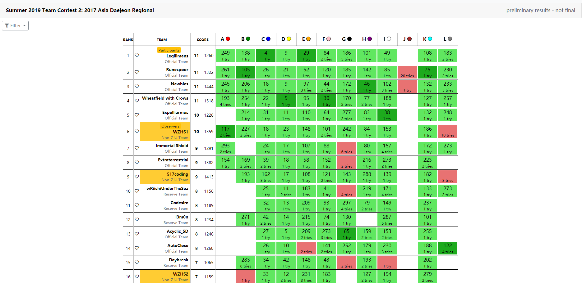lyc: 这把从演员变成了导演。全场基本上就是在开题,想题,只写了少部分的代码,大多数题目还是交给队友来写代码了。能直观感受到的问题就是我们队伍写代码容易自闭,而且每次自闭都会用掉不少的时间,导致后期手上很多题,但没时间写的情况。[[br]]