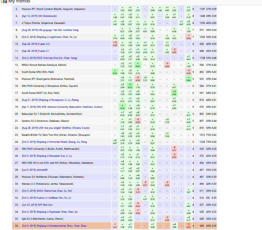 zyh:我觉得这种类型的比赛以后要多练,有知识盲点,并且我们全队如今做胖题的水平还是有些不够,比如我在不到2h就会做的E题 BM+生成函数递推,但就是写不对以前没有写过BM。全队合作一道题的水平还有待加强,虽然说在4题之后去开E和K两个胖题是有些失误的,但是一个都没过还是说明了我们做胖题的水平不合格。