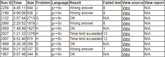 出门各自看题。lmh上机签K,K1y7。sds上机签D,不一会发现做法假了,找lmh得到了另一个做法,写丑了一发得到WA1,迅速改好后D2y28。期间lcd对着A冥思苦想。lmh看G,sds看H,sds得到了一个6e8的做法后上机写,T了,随后优化到5e7,又T了,试着部分打表后H3y108。期间lmh对着G抓耳挠腮。lcd看C,抽象出一个模型讲给lmh,lmh指出这是一个m2的四边形不等式优化dp,但是他们两个都不会,弃了。lcd化了E的柿子,感觉是个拉格朗日乘数,但是他不记得乘数怎么搞了,问两个队友队友都表示不会,无奈放弃了E。lcd对着J迅速想出了一个非常喵的贪心,WA了。lmh挠头一个小时终于想出了G,和sds确认后上机写,G1y177。sds和lmh看了lcd的贪心表示这无比正确根本查不出错误,于是三个人一同陷进去了。封榜后sds重构了lcd的代码,WA在同一个地方,认为lcd的贪心假了,但是又构造不出反例叉掉。lmh认为不应卡在J上面,而看了其他题之后也没有想法。全队陷入自闭,4题爆炸GG。