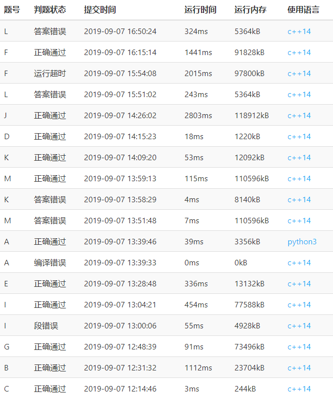 开场各自看题。lmh上机签C,C1y15。sds上机签B,B1y32。sds继续写G,G1y49。lcd开出A并喂给sds。lmh上机写I,由于数组开小SF了一发,I2y65。lcd上机写E,E1y89。sds用py写A,A1y100。lcd开出D和M,决定先写M,让sds看D。lcd得到了WA后换lmh写K,lmh也WA了,换sds写D。三人分别写对,M2y120,K2y130,D1y136。sds和lcd看J,讨论后觉得sds的做法更好,J1y147。三人分头看最后三道难题。sds和lcd讨论了H,推了几个式子后觉得不可做。lcd看了L,决定先上机写写。lmh开出F,sds听了lmh的虚树做法后优化成树形DP。此时lcd获得WA,换sds写。sds由于用vector存边T了一发,改完后F2y256。三人看L,sds帮助lcd打表,lmh翻出了一个骰子开始手玩,两人验了验lcd的算法觉得没有问题。sds打表发现lcd的“人类智慧”出错了,但是已经没有时间改完,无奈打出GG。